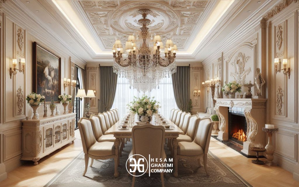 در طراحی داخلی کلاسیک نیز اغلب از فضاهای بزرگ و سقفهای بلند استفاده میشود. شما در فضای داخلی ویلاهای کلاسیک کلاردشت نیز میتوانید عناصر مجلل و لوکس را ببینید.