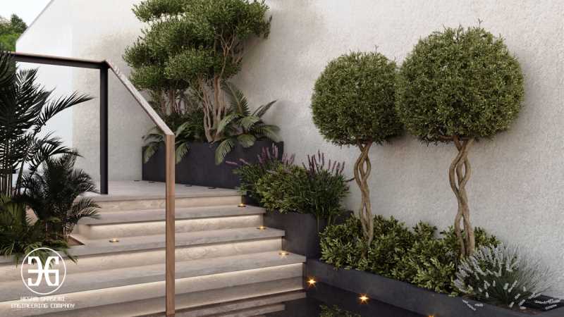 هدف از این فضا ایجاد حس خوشآمدگویی، زیباشناسی و ارتباط مناسب با سبک کلی باغ ویلا است. درحقیقت، ورودی نهتنها مسیر عبور خودرو و افراد را مشخص میکند، بلکه نمایی از هویت و سبک طراحی کلی باغ را به بیننده منتقل میکند. به همین خاطر است که ورودی بهوسیله المانهای نورپردازی یا عناصری مانند ستونها طراحی میشود.
