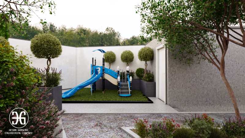 فضای بازی یا تفریح در باغ ویلا ساده