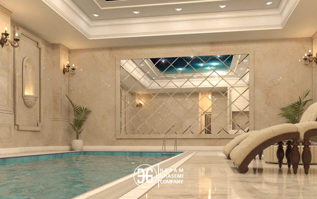 - همزمان با طراحی استخر باید فضایی برای حمام یا رختکن در نزدیکی استخر طراحی شود.